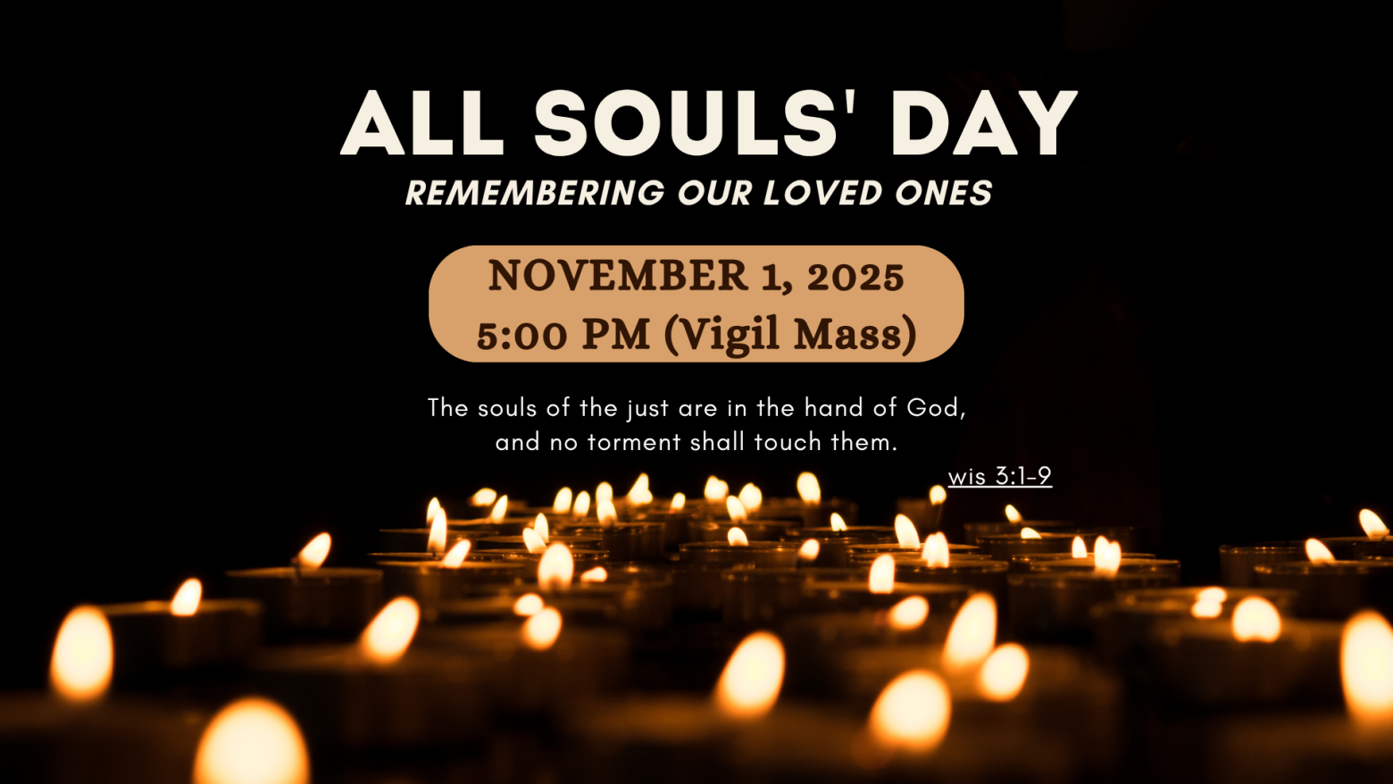 Today we celebrate the 30th Sunday in Ordinary Time. We move towards the great holy days of All Saints and All Souls, on the coming weekend. As we move ever closer to the end of the Liturgical Year, we are reminded of the joy of our call to holiness and how we are continually united to the communion of saints and the invitation to pray for those who have died, especially for the holy souls in purgatory.